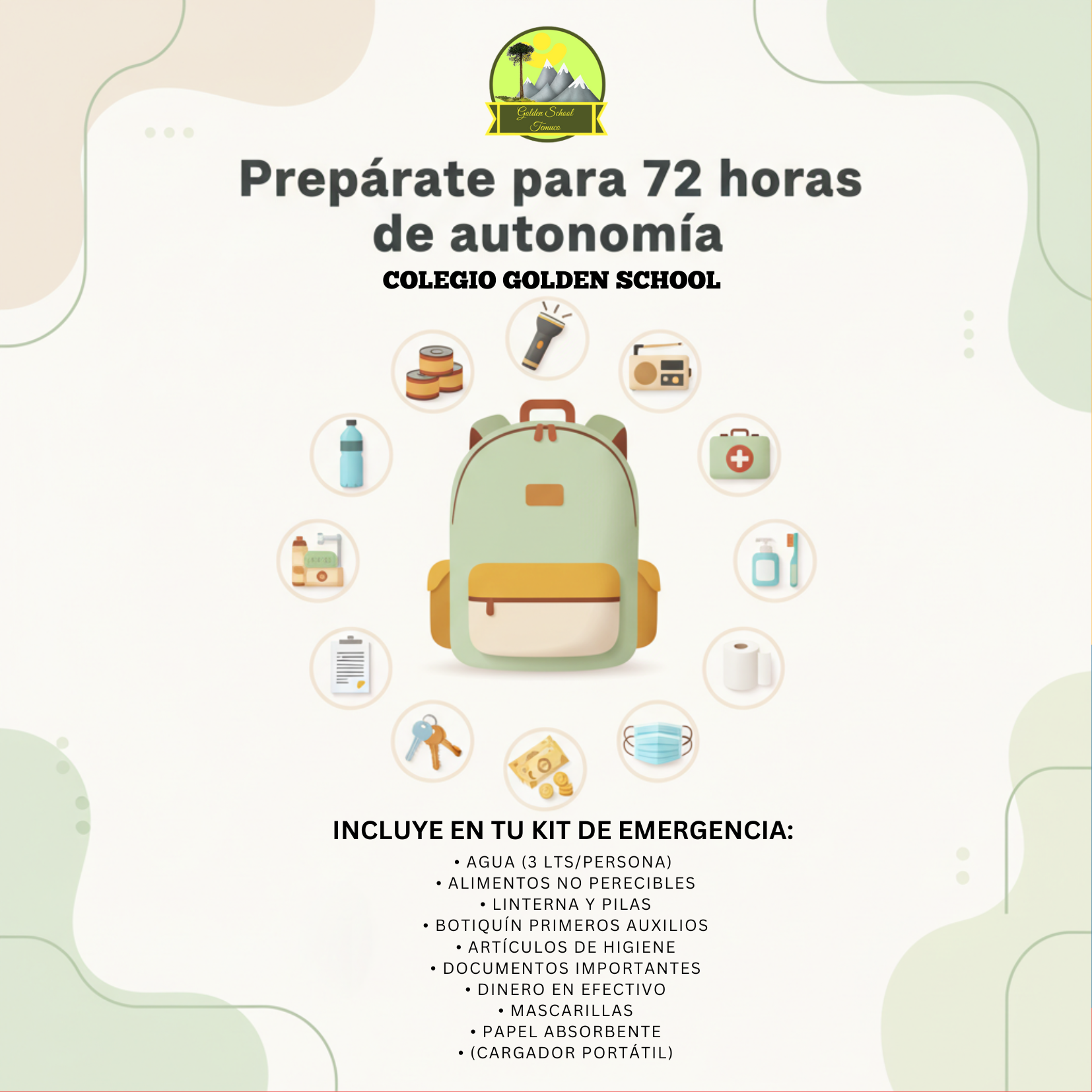 Cada familia debe contar con su Kit de Emergencia para 72 horas, con todo lo necesario para mantenerse segura y autosuficiente en caso de una emergencia.